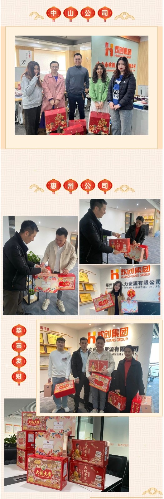 春节将至,为答谢集团及各分子公司的家人们在过去一年的辛勤付出,与公司同舟共济、携手同行,欢创集团特意准备了一批精美而实用的年货礼盒。这些礼盒由董事长罗宁弟亲自在总部派发,并将从总部发往全国各分子公司,向每一位欢创家人送上诚挚的问候和新年的祝福。年味浓浓,情谊融融。在新春年货发放现场,年货堆积如山,映入眼帘的是家人们幸福喜悦的笑容——